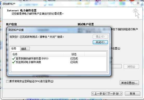 點擊“下一步”,系統(tǒng)會自動進行檢測,成功后顯示界面如下。然后點擊“關(guān)閉”即可完成設(shè)置。
