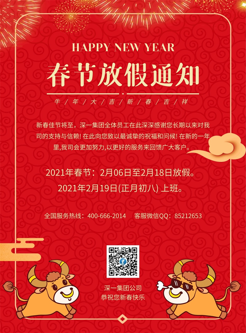發(fā)布日期:2021-02-05 關(guān)鍵詞:【深一集團】2021年春節(jié)放假安排通知 已有 18211 人瀏覽
